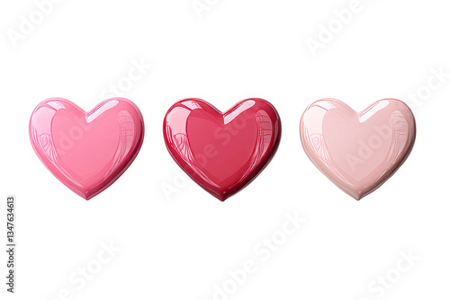 Glossy hearts in pink and red, shiny surface for design, cut out transparent