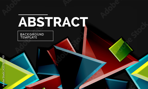 Glossy mosaic style geometric shapes - squares and triangles on black