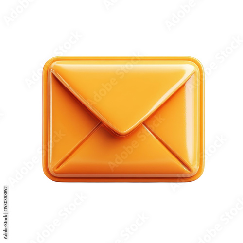Glossy Orange Email Icon Communication Newsletter Design 3D Render on transparent background