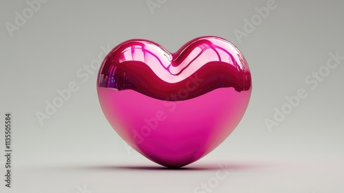 Glossy Pink Heart Sculpture on Gray Background with Reflections