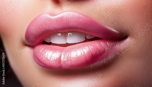 Glossy Pink Lips with Natural Shine and Smooth Texture