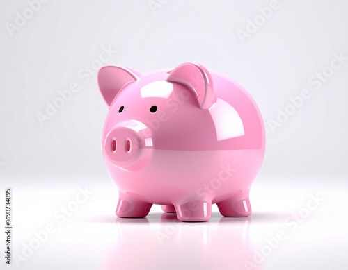 Glossy Pink Piggy Bank on white background