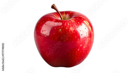 Glossy, red apple with a stem, isolated on a black background