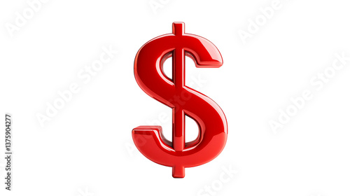 Glossy red dollar symbol on black background, cut out transparent