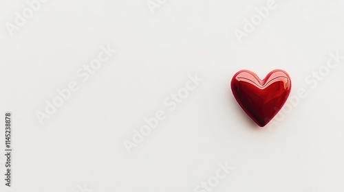 Glossy Red Heart Icon on Soft White Background for Love Themes