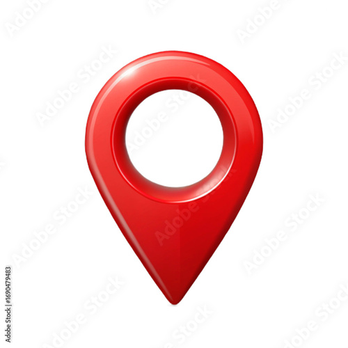 Glossy red map pin icon, isolated on transparent background