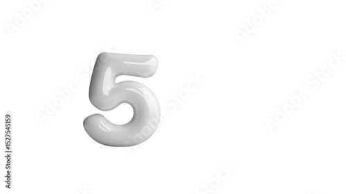 Glossy White Number Five on Transparent Background