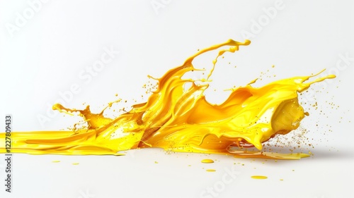 Glossy yellow paint splash forming fluid and dynamic shapes against