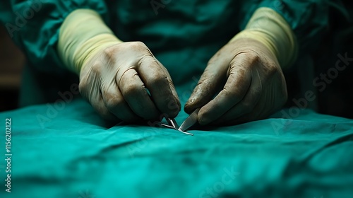 Gloved Hands Holding Surgical Instruments On Green Drape