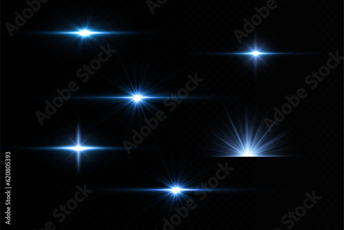 Glow effect. Blue glowing particles, stars. Vector illustration.