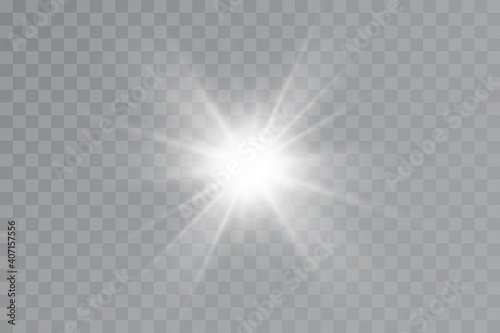 Glow effect. Star on transparent background.Bright sun. Vector illustration.