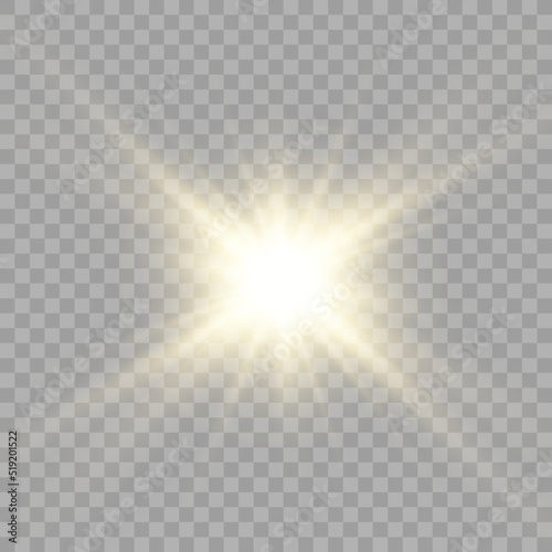 Glow isolated light effect set, lens flare, explosion, glitter, line, sun flash and stars. Abstract special effect element design. Shine ray with lightning