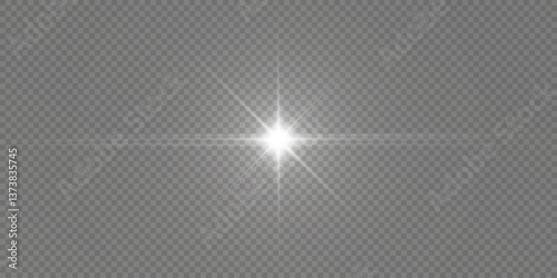 Glow light effect. Star formation with flares on a transparent background. Vector illustration. Sun