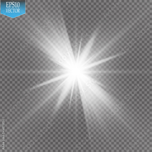 Glow light effect. Starburst with sparkles on transparent background. Vector illustration.