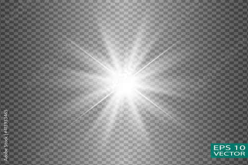 Glow white light effect set, lens flare, explosion, glitter, line, sun flash, spark and stars. Abstract special effect element design.