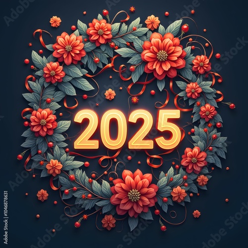 Glowing 2025 New Year Sign in Snowy Forest - Festive Winter Wonderland Celebration