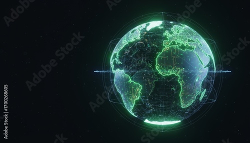 Glowing 3D Eco Globe Rotating in Abstract Design with Upscale Render Illustrating the Concept of Global Sustainability and Environmental Awareness