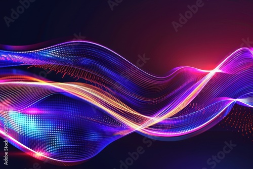 Glowing Abstract Wave, an immersive digital representation of fluid movements and luminous particles in a dark space, embodying futuristic technology and innovation.