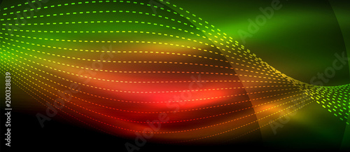 Glowing abstract wave on dark, shiny motion, magic space light. Techno abstract background