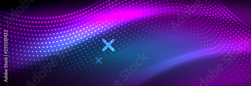 Glowing abstract wave on dark, shiny motion, magic space light. Vector techno abstract background