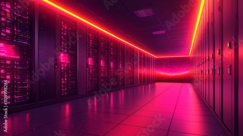 Glowing AI Powered Server Room Symbolizing Data and Communication Heartbeat of Global Industry