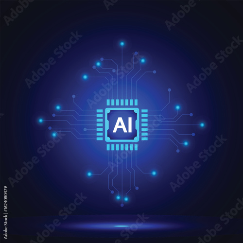 Glowing AI Processor Chip with Futuristic Circuit Design Background