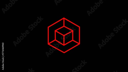 Glowing animated 3D cube inside a hexagon frame representing digital technology, blockchain, data storage, or structure concept. Perfect for tech, innovation, and futuristic design themes.
