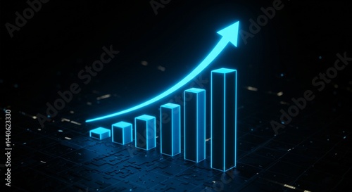 Glowing Bar Graph with Upward Arrow Symbolizes Growth and Positive Trends on Dark Backdrop
