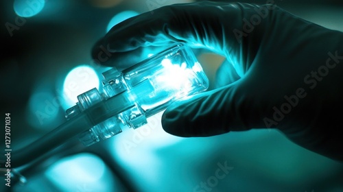Glowing Bio-Medical Sample in Gloved Hand