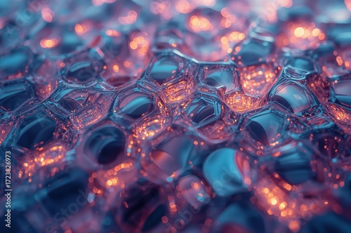 Glowing bio-plastic sheet reveals intricate cell structures with radiant hues