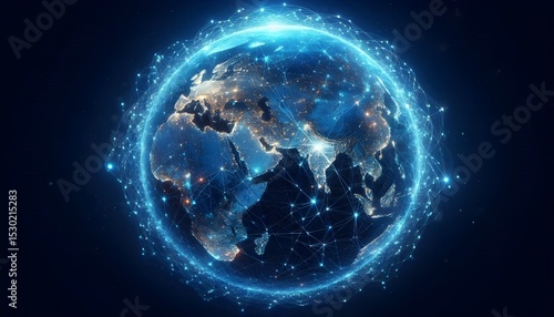Glowing blue earth representing global digital connectivity and networks