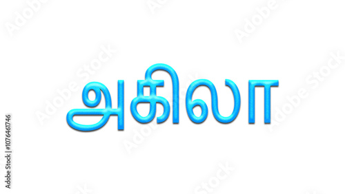 Glowing blue effect of Tamil name Akila in Tamil font.