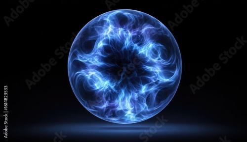 Glowing blue energy sphere on black background (4)