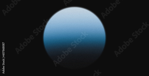 Glowing blue gradient sphere on black background, moon rise abstract grainy noise texture effect poster design
