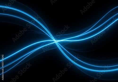 Glowing Blue Lines Creating Motion Wave Shape on Black Background