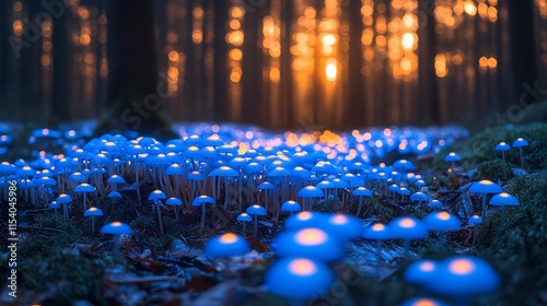 Glowing Blue Mushrooms In A Dark Forest Setting