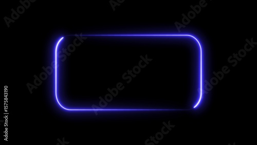 Glowing blue neon rectangle frame with rounded corners on a black background