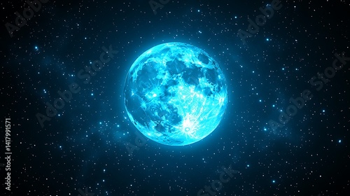 Glowing blue planet in dark space