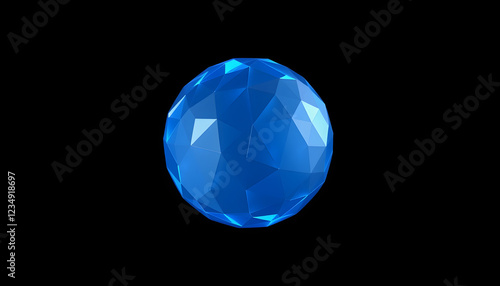 Glowing blue polygonal globe hologram on dark background. 3D Rendering, Side lit, with white tones