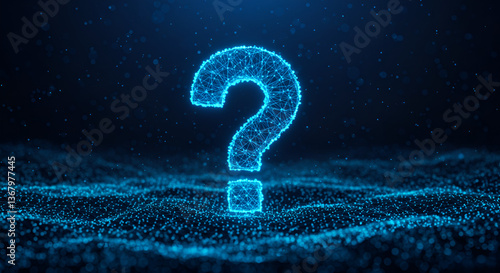 Glowing Blue Question Mark Symbol on Digital Wavy Pattern Background