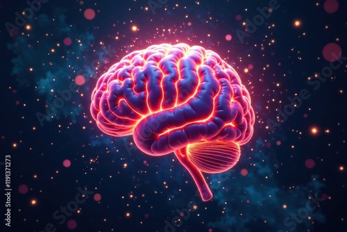 Glowing brain, circuitry explodes outwards, vibrant energy , connection, stock photo