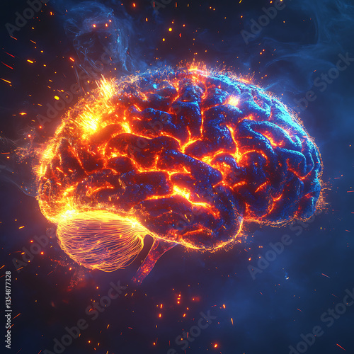 Glowing brain illustration symbolizing creativity and innovation with vibrant colors and sparks