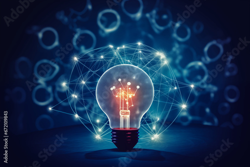glowing bulb surrounded by digits network. Information technology business idea illustration