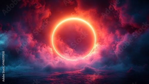 Glowing circle amidst swirling clouds and textured floor
