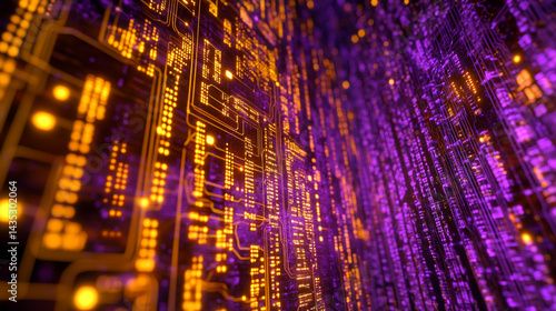Glowing Circuit Board Abstract Purple and Gold Digital Art