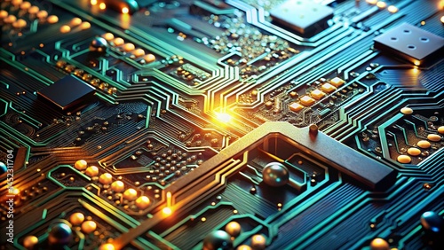 Glowing Circuit Board Technology Close-up: Intricate Electronic Components