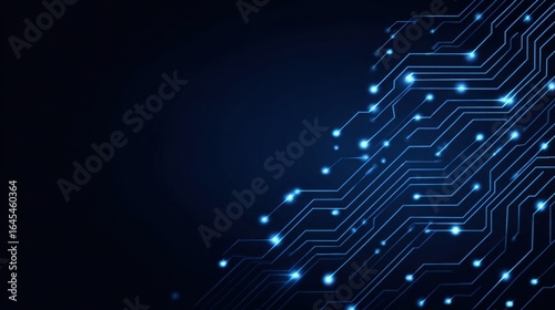 Glowing Circuit Lines and Dots on Dark Blue Digital Background