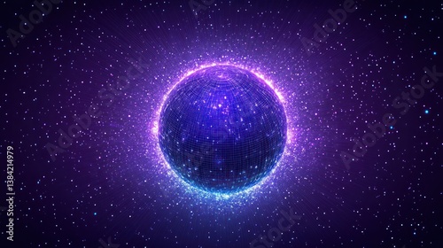 Glowing cosmic sphere, space backdrop, energy, digital art, website header