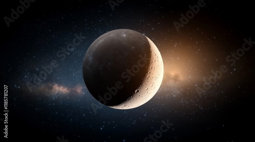 Glowing Crescent Moon Surrounded by Stars in a Night Sky with Cosmic Background