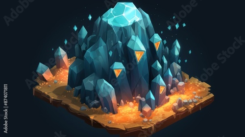 Glowing Crystal Mountain. Fantasy Illustration, Game Asset